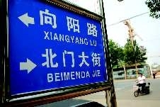 25日,记者发现在潍坊市向阳路与城隍庙街路口,一块路牌将两条相邻的路指到相反的方向。向阳路在北门大街的东侧,但是路牌的指示却是显示向阳路在北门大街的西侧,这给一些不熟悉路况的路人带来了困扰。