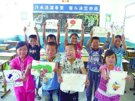 26日上午,圪垯上乡寄宿学校的40名小学生上了一次与众不同的美术课。“以前美术课上,就是简单的画画,这次支教老师在上课之前给我们每人一张画,还让我们再画一幅自己喜欢的。”杨阳阳说。原来是山东潍坊的志愿者周刚在来吕梁兴县之前在老家自办的培训班上带来了礼物,让山东的孩子们给山西大山的孩子准备了自己画的画,他给每个孩子分发下去后,“山东的孩子知道大山里的小朋友没有走出过大山,没有见过很多东西,他们就画他们最喜欢的东西送给他们。”