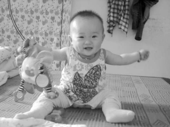 我年龄虽然不大却很要强,由于前段时间只会蠕动,妈妈总说我是只毛毛虫。就为这,我每天早上都很努力地练习,现在爬得可好了。我特别喜欢玩拉拉环,就连拍照片时都不肯放一边,看我手里的拉拉环,能拉很长很长呢,好玩极了。
