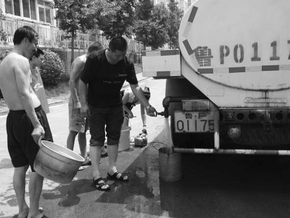 本报聊城7月26日讯(记者 李璇 实习生 吴倩)“本来说就停一天,结果两天多了还没来水。”城区中通时代豪园二期从25日早8点停水,由于自来水管道增容出意外,到26日晚上8点还没能恢复供水,小区居民大热天里没水吃很狼狈。