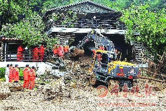 7月27日,在韩国首都首尔以东的春川,救援人员在泥石流现场实施搜救。