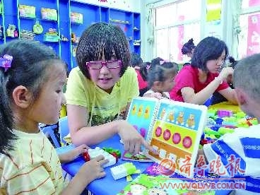 本报7月27日讯(记者 李飞 实习生 周美霞) 讲故事、做游戏、摆魔方……27日上午,济南实验初中8名初一女生走进槐荫区南辛庄幼儿园,体验了一把当老师的感觉。一上午的角色体验,让这些十几岁的初中女生直呼“好难”。