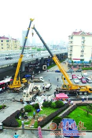 27日早6点,在宁夏路与高田路交界处,一辆拆违吊车不堪广告牌重负,翻倒在路边,将一个报刊亭砸烂,所幸无人员伤亡。宁夏路高田路路口被堵了一天。