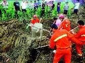 12:15,由当地街办联系的一台大型挖掘机到达现场,指挥员迅速制定救援方案。为防止对被困妇女造成伤害,挖掘机清除机井周围半米以外的土,随后由消防官兵利用铁锹清除机井管道周围的泥土,一节一节地将机井内的水泥管清除。