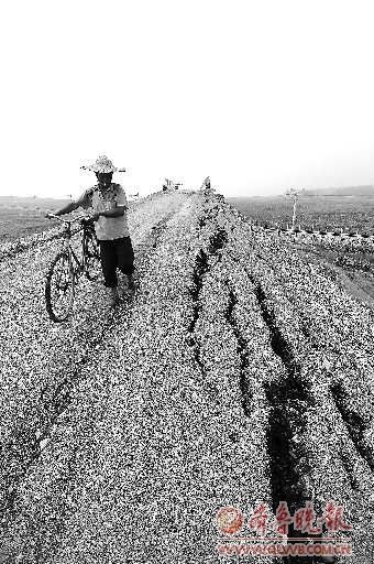 “这些石头砌的护坡质量太差了,这才通车半年多就出现了滑坡、塌陷的情况。”村民张绪文拿起一块脱落的石块告诉记者,4月份的一场大雨过后,护坡塌陷的情况已经变得相当严重,两侧种地的村民每天都忧心忡忡。另外,由于高架桥的坡度过陡,村民们的耕种机械根本就不敢过桥行驶。
