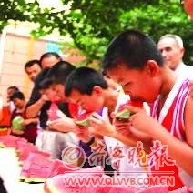7月28日下午,天气虽然闷热,但是福鑫苑社区的居民却兴奋不已,全福街道福鑫苑社区正在举行“邻里乐吃西瓜”比赛。来自社区的50多名居民踊跃参加,有刚满6岁的小孩子,也有65岁的老人。比赛开始后,不管是老人还是小孩,都是狼吞虎咽,酣畅淋漓,欢乐开怀。