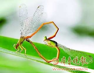 盛夏时节,荷塘水边,蜻蜓飞来飞去飞去飞来,美丽而且迷人。它们成双成对,恩爱无比,其美丽的造型也举世无双,诗情画意……
