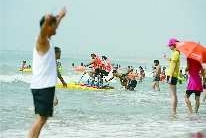 浒苔虽然到了海阳,但是分布很不均匀。在万米海滩,只有零星的浒苔被冲到沙滩上。据海阳市旅游局统计数据显示,进入旅游旺季,万米海滩每天接待游客近万人次。