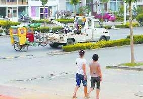 作品描述:这三轮车怎么了?居然要用清障车拖走,真有点大材小用了。
