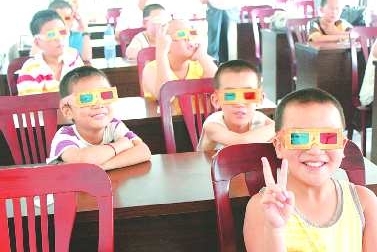 安宁社区的孩子们看到精彩的3D电影特别兴奋。