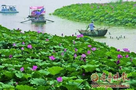 28日下午,在微山湖水上荷园,游客们正乘坐小船赏荷。当日,第十八届微山湖荷花节隆重开幕。现在正是10万亩荷花次第开放的时节,开幕日来自省内外的宾朋们共同欣赏了开幕式和微山湖风光。 本报记者 张晓科 曾现金 摄