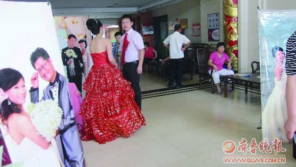 7月28日,是个好日子,不少新人把大喜之日定在这一天。28日,海滨五路一家酒店的大堂内,同时有三家婚宴接待处,三对新人分别忙着接待各自的亲朋好友,添了更多热闹喜庆。