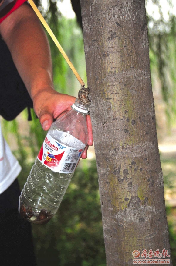 随后,韩建民又把面筋放到了阴凉处。“得等个半小时,这样面筋里的水才能蒸发掉,面筋就会变得很黏。”韩建民说,知了特别喜欢杨树、柳树,在这两种树下可以黏到很多。