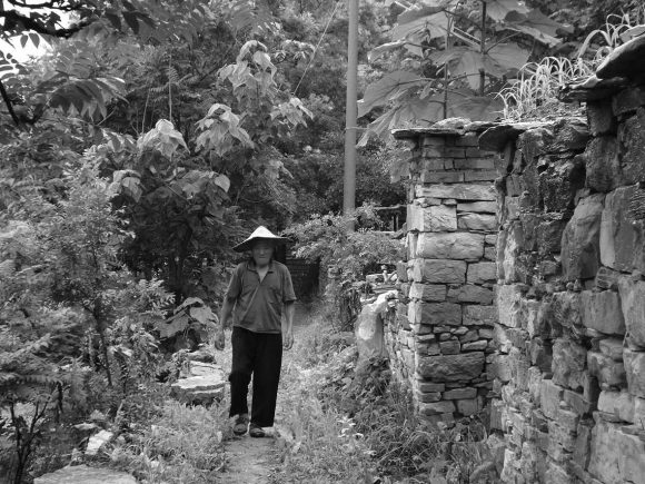 入村的路共有两条,一条是盘山路,一条是穿越盘山路的山脊小道。鲁迅先生说过,“其实地上本没有路,走的人多了,也便成了路。”为了缩短行程,杨集庵的村民在大山深处踩出了一条羊肠小道。这条小路的的确确是走出来的,看不出一点人工修过的痕迹,小道两边全是野草,更多的则是天然形成的不规则的石头路,需要不断地在石头上找下脚的地方跳来跳去。这条小道之所以备受杨集庵村民们的青睐,主要是因为近。从盘山路往下走到山下的杨集村赶集,如果走盘山路需要7公里路,而走山脊上的小道儿,只需要走4公里路。