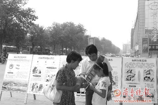 7月28日唐山大地震35周年,市地震局工作人员在渤海国际广场利用展板和防震宣传手册等普及防震减灾知识。