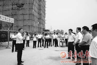 孙爱军副书记、刘新云副市长领导一行实地深入万象城回迁安置小区施工现场,对小区规划设计、建筑质量、施工进度等进行了仔细查看。 (王陶培)