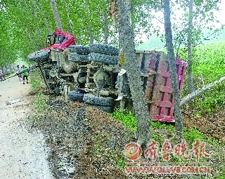 7月31日中午11时7分,梁山县消防大队接到报警,该县馆驿镇后林村北的公路上,一辆重型卡车发生侧翻,一头撞在路边的大树上,车身冲入路边沟内,车内一人被困,请求消防救援。接警后,梁山消防立即出动两部消防车和12名官兵赶赴现场施救。