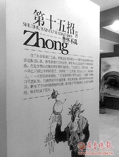 第三展厅是这个廉政教育基地的特色———展示了水浒“反腐十八招。”“竟然有来访者开着玩笑说出一段十八摸,这也太不严肃了。当时为啥不总结成二十招,或者十六招也好啊,省得他们乱联想。”一位工作人员说。