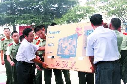 7月28日上午,兰山区银雀山街道梨杭社区为武警临沂支队二中队官兵送去了猪肉、西瓜、超薄电视机等价值2万余元的慰问品,表达了军民之间的鱼水深情。
