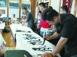 7月30日,临沂市直书法家协会会员们在为兰山区前园社区几位老军人挥毫泼墨,送去“八一”建军节的慰问。