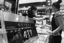 7月31日,在中百大厦一黄金饰品专柜,价格牌显示当日的黄金价格为417元/克。据了解,近期,黄金价格相对较为平稳,417元/克的价格已经维持了半个月左右的时间。黄金价格虽然一直居高不下,消费者的购买热情却没有受到较大影响,相比去年同期,今年夏季黄金饰品的销售还出现了小幅上涨。