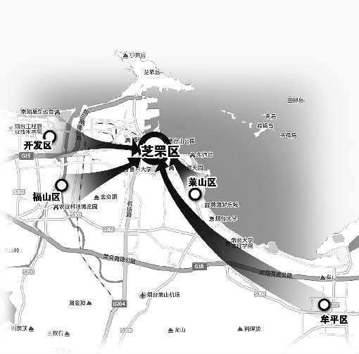 由汽车东站开往西拓区公交场站,连接莱山—芝罘—福山。