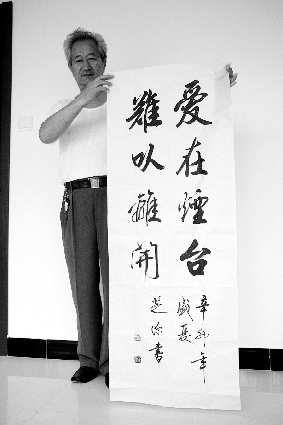 31日,记者在楚毓社区采访了这位酷爱书法的老人。孙老今年74岁,从来没有离开过烟台,说不上烟台比其他地方好在哪,只是他觉得他的根在烟台,离不开这座城市。