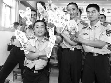 26日,垦利县和平社区工作人员来到武警垦利县中队,探望武警官兵并送去了居民亲手制作的拥军鞋垫和文艺演出。