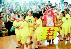 7月30日上午,北顺小学幼儿园举行学期汇报演出活动,158名小朋友表演了《老鼠娶新娘》、《会跳舞的小牛》等十多个节目,孩子的家人纷纷用相机、手机记录下孩子们的精彩表演。