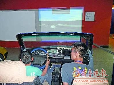 2日上午,在山东省科技馆常设展厅,孩子们正在汽车驾驶模拟器上体验驾车的乐趣。本报记者 李飞 摄