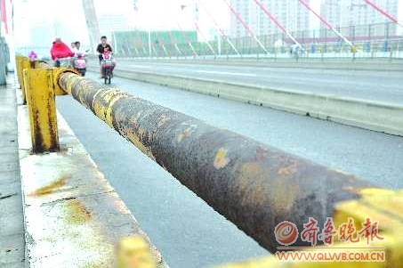 “最近吃过晚饭我经常到桥上溜达,发现桥上靠近人行道位置的护栏锈得很厉害,很多地方的黄漆都掉了。”市民李先生告诉记者,每天很多人和车都从这里经过,护栏上醒目的黄漆掉了以后不仅难看,而且还会影响到原有的提示作用。