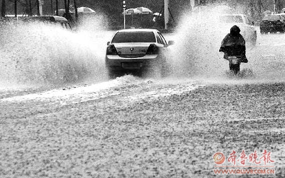 记者在英华路看到,一辆白色小轿车行驶到路口南侧,看到积水后便掉头驶往太白楼路。而一辆黑色轿车犹豫了一会儿后,向水中开去,大约5分钟后便又折返而回。“前面的水太深,不敢过。”黑色轿车司机告诉记者,在英华路与水产路交叉路口,一辆小客货车泡在了水里,为了不让自己的爱车有同样的遭遇,他只好折回绕路走。