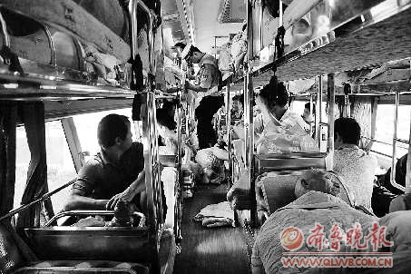 8月2日下午,在德州市二屯镇,一辆由江苏沭阳开往北京的大客车被交警查住。核载42人的大客车里塞进54人,超员28%。民警对司机进行了处罚后,对超载的乘客进行了转运。