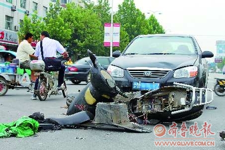 轿车撞烂摩托