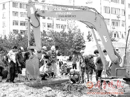 8月2日上午9时许,经区海上公园附近的地下水管破裂,威海市水务集团工作人员迅速赶到现场,对管道进行维修。