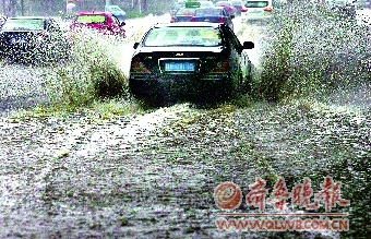 在太白楼路沿线各路口处,均发生了不同程度的积水情况,尤其是沿线与共青团路、建设路、琵琶山路交叉处的3个路口。阜桥口处的路面下沉部分形成了一个小“水塘”,过往行人及电动车均涉水前行,对道路交通造成了极大影响。记者采访获悉,当日,城防办、排水管理处会同宗圣人防公司,采取了一些必要的措施,对积水处进行强排,并将各个路口的排水工作落实到具体责任人,通过水泵抽水等措施强排积水。