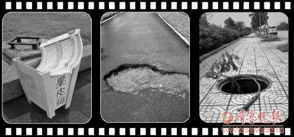 18月2日,记者在光明广场发现,广场上很多垃圾桶毁坏。
