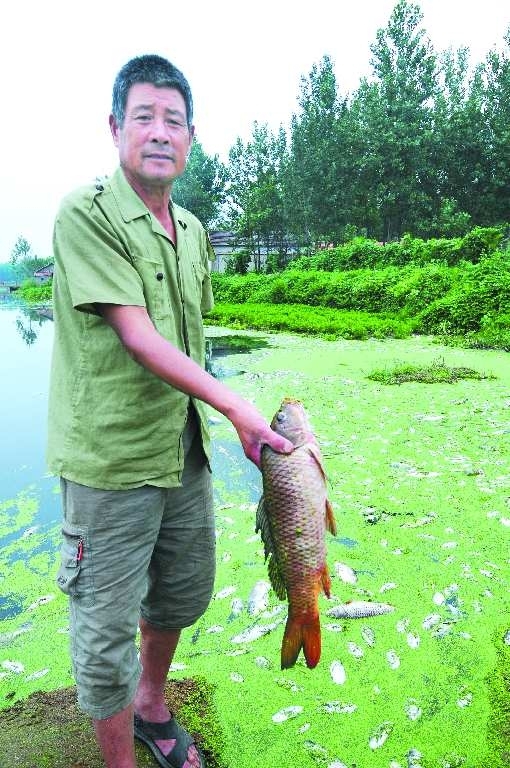 鱼塘承包人怀疑死鱼和河道上游的大蒜脱水厂排污有关。据估计,这次一共死了大概3万多斤鱼,损失在7万元左右。 本报记者 胡跃东 摄影