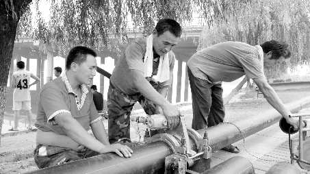 本报8月2日讯 (通讯员 韩继飞 张洪冰 记者 张帆 实习生 薄玉迎)2日,临沂市园林局施工人员利用顶管技术在滨河路外侧路基以下钻孔,把管道铺设在地下,将道路外侧排水孔连接至滩内雨水管道,以解决滨河路积水难题。