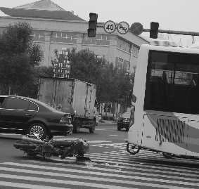本报8月2日讯(见习记者 张牟幸子 李运恒) 8月2日上午,在黄河四路和渤海七路路口,一辆公交车与一辆摩托车相撞。事发当时,该路口的红绿灯又是“睁眼瞎”。