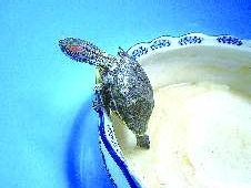 作品描述:女儿的同学送给她—只小乌龟,养在—只瓷盆中。可能外面的世界太精彩,小乌龟经常玩“越狱”。