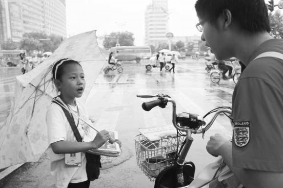 上午9点多,小选手路晓灿和李清岩在百货大楼路口卖报,突然看到地上一个棕色钱包,第一时间交给了附近岗亭的交警。“我看到里面有钱,怕丢钱包的人急用,就赶紧送到岗亭去了。”李清岩说,她们看到钱包里有钱、证件和银行卡。