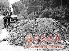 些废料铲入车中,然后倒进一个2米深的土沟里,周围有近40人把守。