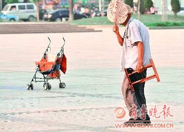 时间:2011年7月16日地点:郓城唐塔广场自述:酷暑下,老人禁不住用芭蕉扇遮挡日光。