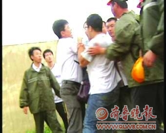 8日下午4点半左右,央视记者在维持现场秩序的大连市交警的指挥下进入厂区,却遭到企业内冲出的数十人推搡阻拦。面对记者提出的采访要求,这家企业一直没有负责人出面正式回应,而现场员工则直接动手抢夺记者的摄像机,并殴打记者。