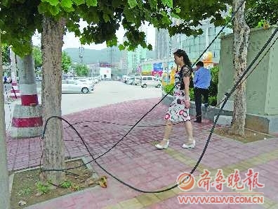 看着路上垂落的线缆,不少市民表示了担心,“线缆都这样了,咋还不处理?不知道带不带电,万一有电电了人咋办?”在附近上班的李先生告诉记者,垂落的线缆前两天有人来处理过,把电线杆上的线剪断后就缠在树上了,几天了没见人再来处理,“估计没电,可这样放在路上也影响交通呀,希望有关部门抓紧来处理。”