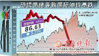 受美国经济前景担忧和美元上涨拖累,4日,纽约原油期货价暴跌5.30美元,报收于每桶86.63美元,跌幅为5.8%,创2月18日以来的最低收盘价。5日,由于投资者对欧洲债务危机蔓延的担忧缓解,国际油价有所回升,结束了五连跌,但全周仍下跌9.2%。