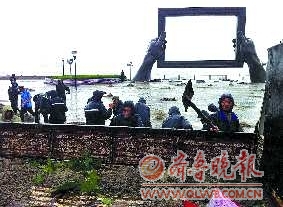 “梅花”过后,海浪携带大量泥沙拍打着海颂广场,8日上午8点,园林部门工作人员冒雨上阵,清理淤积在广场上的泥沙。 本报记者 冯砚农 摄