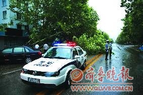 8日早5点,交警在将军路等路段发现两处被台风折损的树木。并与市路政工作人员及时排除障碍,消除了道路交通安全隐患。 本报记者 冯琳 通讯员 于东方 王明江 摄