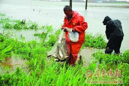 8日,在成山镇海岸线附近,随着涨潮,一些低洼地成为了“池塘”,吸引了不少居民前来撒网捕鱼。